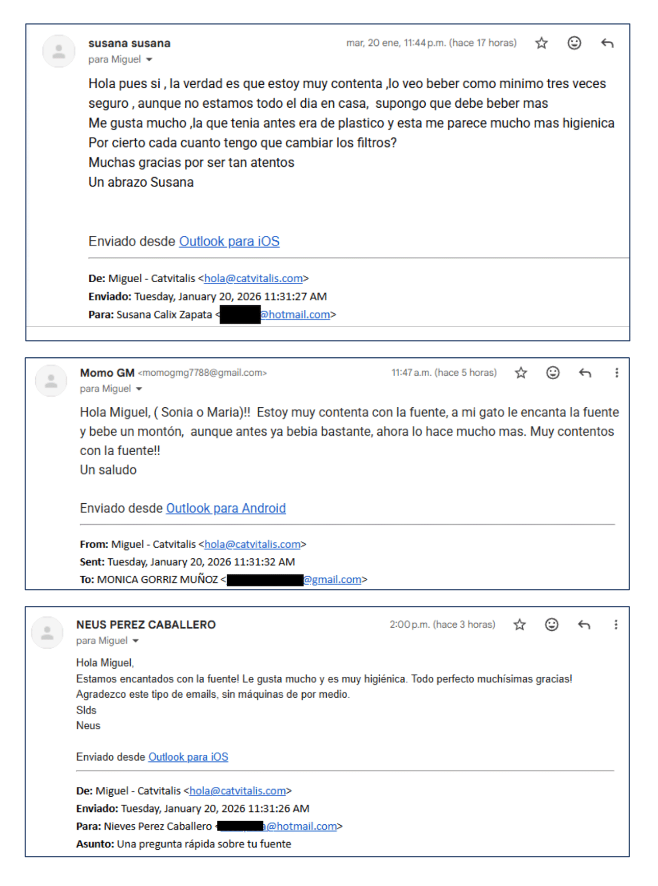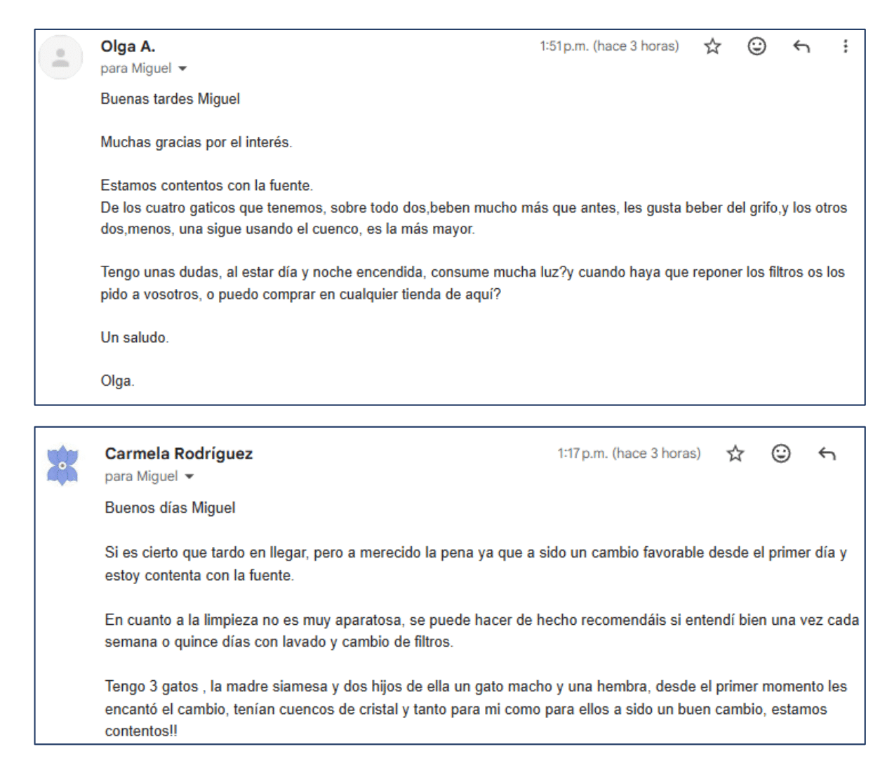 A continuación facilitamos algunos de lso cientos de emails positivos recibidos y más a bajo las reseñas de la tienda.