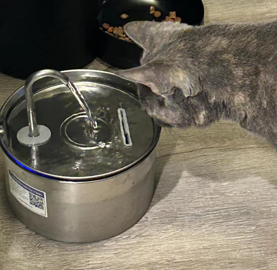 Nuestra fuente, está fabricada en acero inoxidable 304 de alta calidad, es resistente a la corrosión y soporta limpiezas a alta temperatura, garantizando la salud y seguridad de tu gato.
