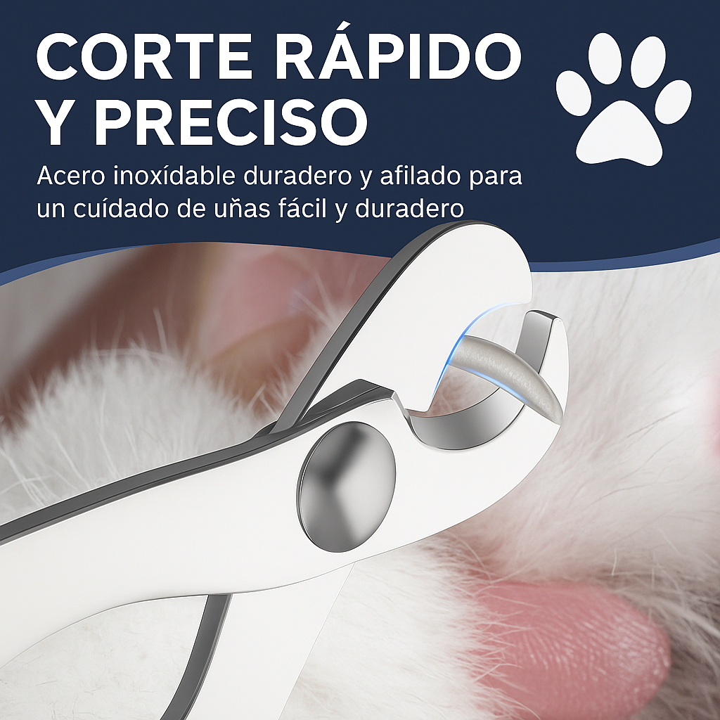 Diseñadas por expertos en bienestar felino, estas tijeras incorporan una hoja curva de acero inoxidable que permite un corte limpio y preciso, evitando desgarros o daños en la uña.